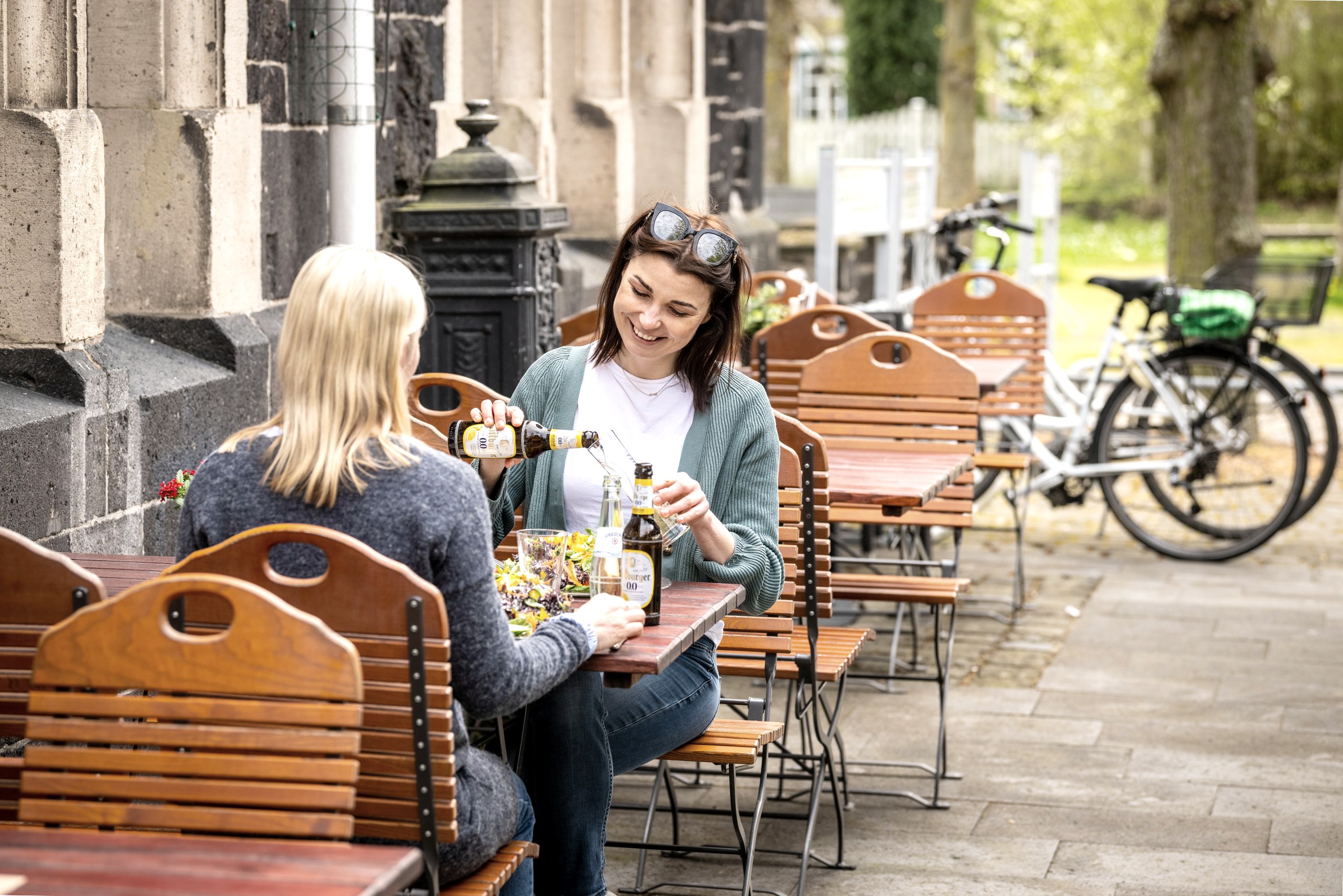 Die alte Bahntrasse führt nun zunächst durch, dann am Rand von Polch entlang. Links sieht man Häuser, rechts blickt man schon auf die Felder des Maifelds. Wie durch einen grünen Tunnel radelt man zwischen schattenspendenden Bäumen und gelangt nach wenigen Kilometern nach Mertloch. Hier lohnt sich eine größere Pause: Wasserspielplatz, große Rutsche, Spielplatz mit Schaukeln und Weidentipis, ein Biotop mit Insektenhotel und natürlich ein paar Picknickplätze. Im Streckenhäuschen gibt’s Eis, Kaffee oder auch was „Warmes“.