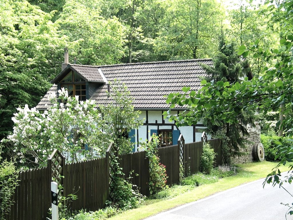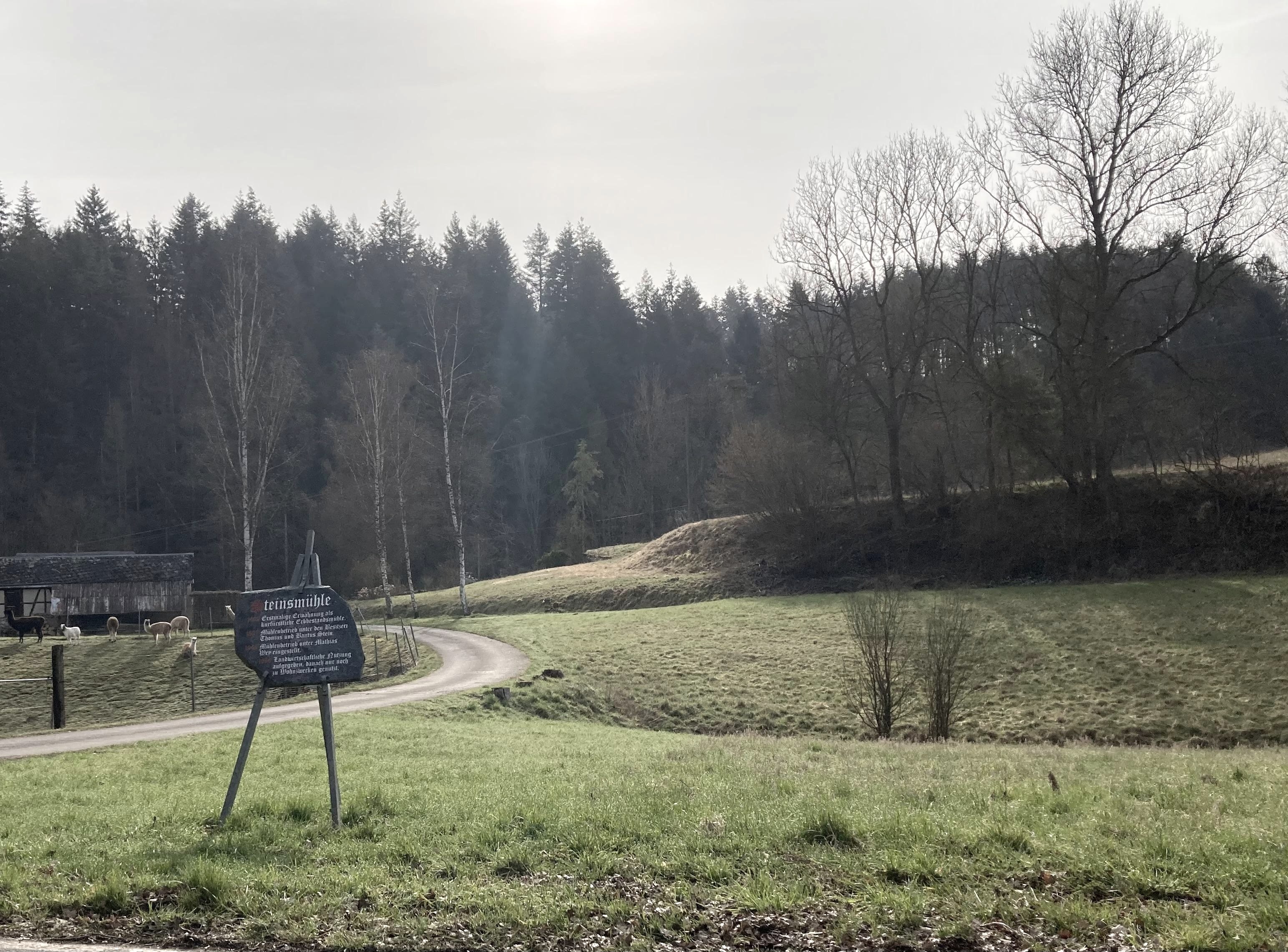 Tatsächlich liegen 15 Mühlen entlang der Strecke von rund 4,5 Kilometern. Manche von ihnen befinden sich seit Jahren im Dornröschenschlaf, manche sind als Wohnhäuser oder auch Ferienwohnungen liebevoll renoviert worden. Alte Bruchsteinmauern vor Grün, ab und zu ein Salamander oder auch Alpakas auf der Weide, Blicke auf den Schrumpfbach – idyllisch ist hier wohl das richtige Wort.