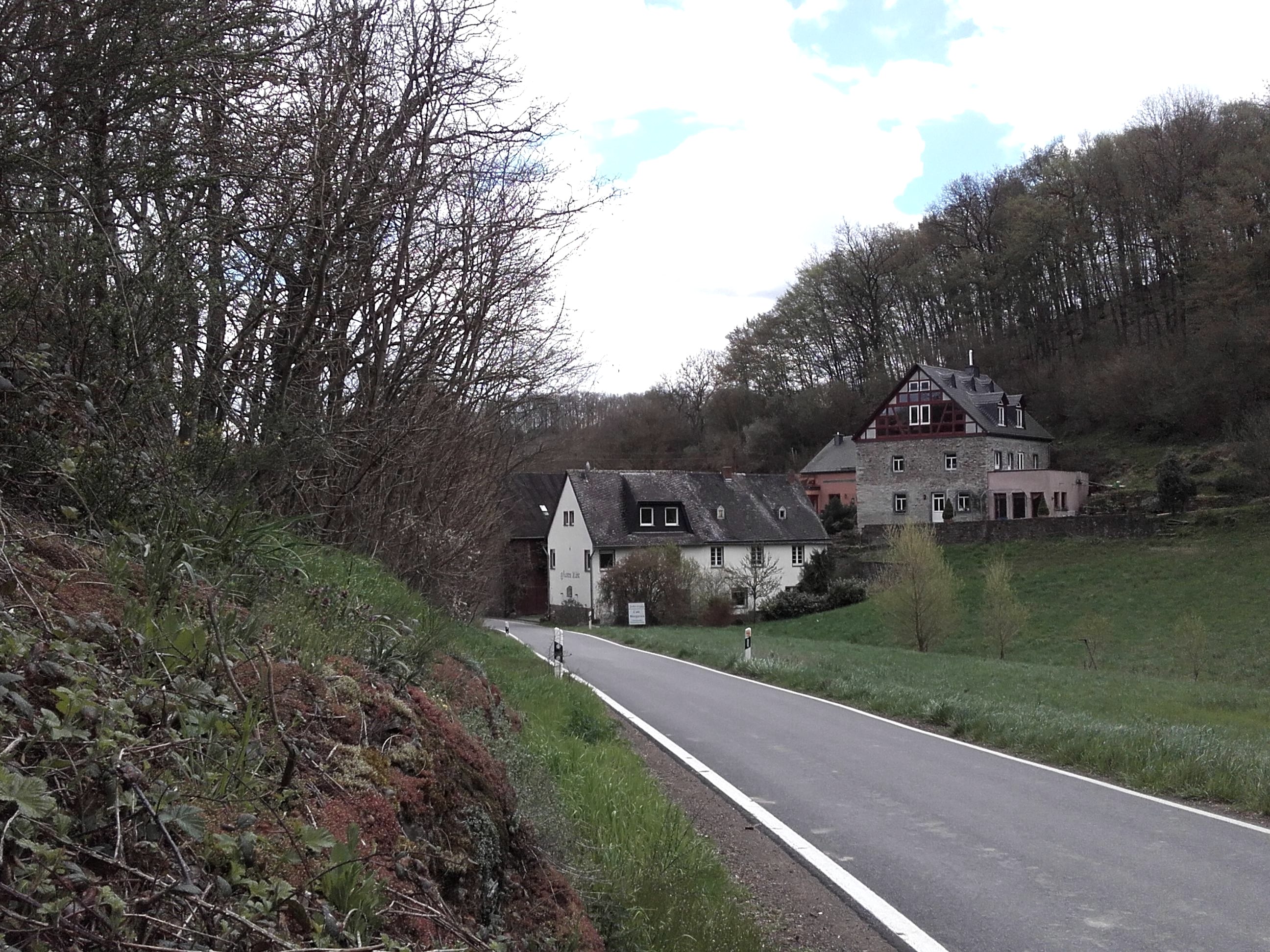 In Hatzenport an der Mosel beginnt die kleine Straße, die sich durch den Wald und vorbei an Wiesen ihren Weg bahnt. Im Sommer erreicht man durch das Tal wunderbar schattig die Höhen des Maifelds.