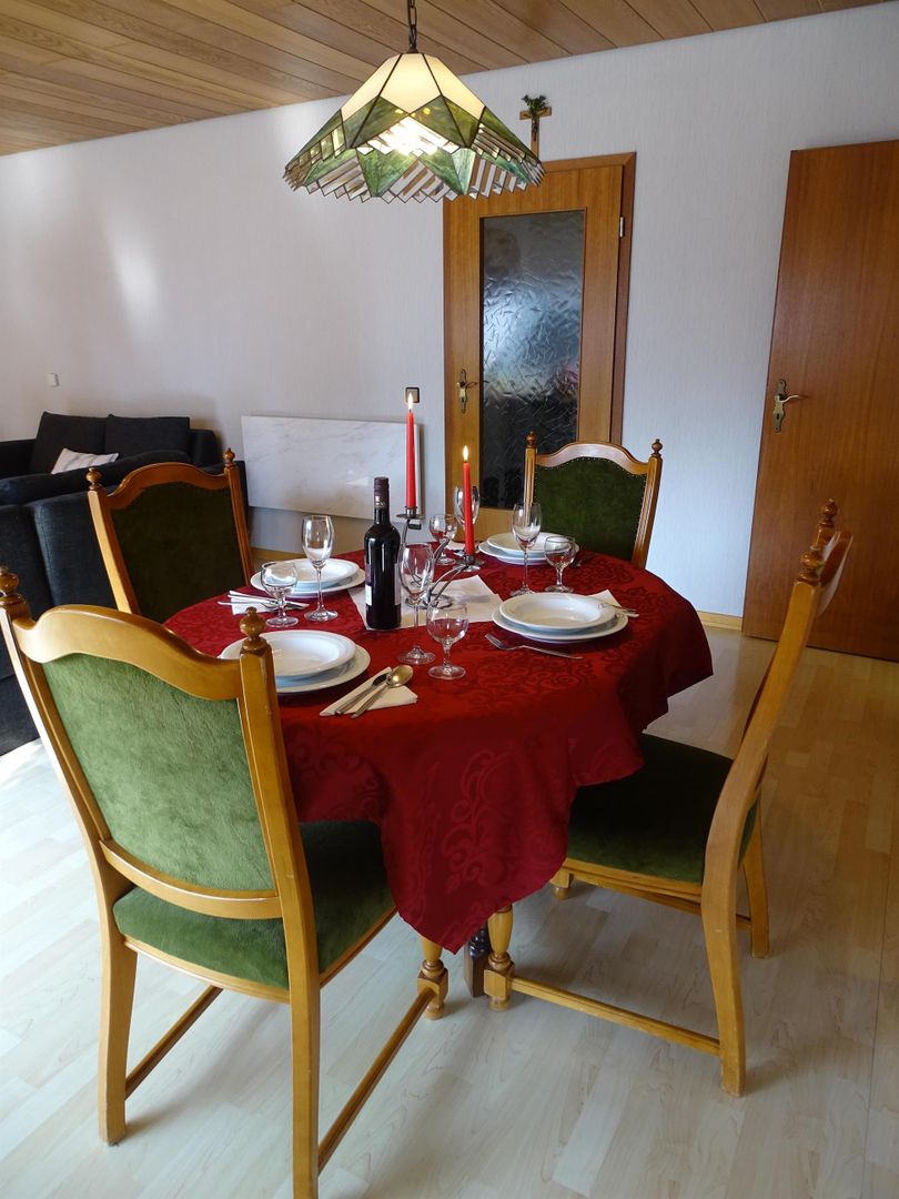 Onze ruime kelderflat biedt 100 m² (grote woon/eetkamer, volledig uitgeruste keuken, twee slaapkamers, moderne, seniorvriendelijke badkamer) voor maximaal 6 personen. Een was-/bergruimte met wasmachine en een zonnig terras zijn ook beschikbaar. Het droompad "Nette-Schiefer-Pfad" begint direct voor de deur, de Rijn en Moezel met hun kastelen en paleizen, het vulkanenpark Osteifel en de beroemde abdij Maria Laach evenals het Maifelder fietspad en andere aantrekkelijke droompaden liggen in de directe omgeving.