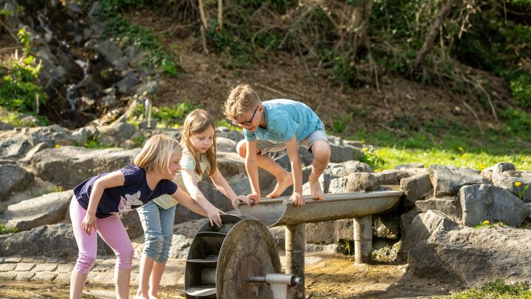 Pause muss man auf diesem Weg noch keine einlegen, in dreieinhalb Kilometern ist man schon in Mertloch angekommen. Hier locken ein Spielplatz, Weidentipis, Schaukeln und ein Klettergerüst. Ein kleines Stückchen weiter, vorbei an zwei spannenden Tafeln zur Landwirtschaft und zum Getreide auf dem Maifeld, ist dann auch noch der Wasserspielplatz! Hier gibt’s eine große Rutsche, Spielgeräte für die ganz Kleinen und auch die Möglichkeit, die Füße zu erfrischen. Ein tolles Ziel für eine kleine Radrunde! Am Streckenhäuschen kann man sich mit einem Eis oder Kaffee belohnen oder an den Spielplätzen auf den Bänken ein Picknick machen.