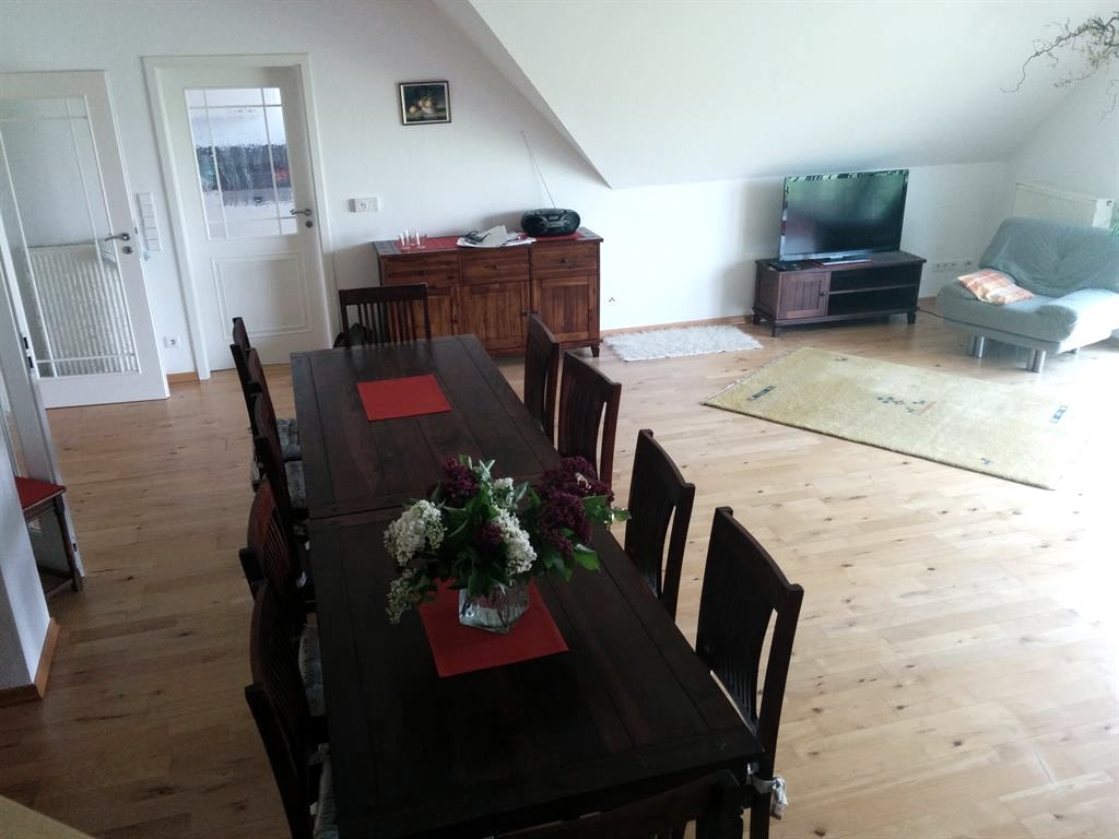 Die Moderne Ausstattung der Ferienwohnung lässt keine Wünsche offen. Auf 120 qm verteilt, stehen zwei (Doppel-)Schlafzimmer, Küche, Tageslichtbad, Gäste-WC, Abstellraum (mit Waschmaschine und Trockner) und ein ca. 50 qm großes Wohn-Esszimmer (mit Schlafcouch). Das Dachgeschoss ist wohnlich ausgebaut. Dort stehen vier Einzelbetten, eins davon in einer Nische. Genießen Sie den Komfort eines PKW-Parkplatzes direkt vor der Tür, während Ihre Fahrräder sicher im Einstellplatz für Fahrräder untergebracht werden können. Für Familien bieten wir ein Kinderbett und einen Kinderhochstuhl, damit auch die Kleinsten sich rundum wohlfühlen. Außerdem steht Ihnen eine Waschmaschine und Wäschetrockner zur Verfügung, ideal für längere Aufenthalte.