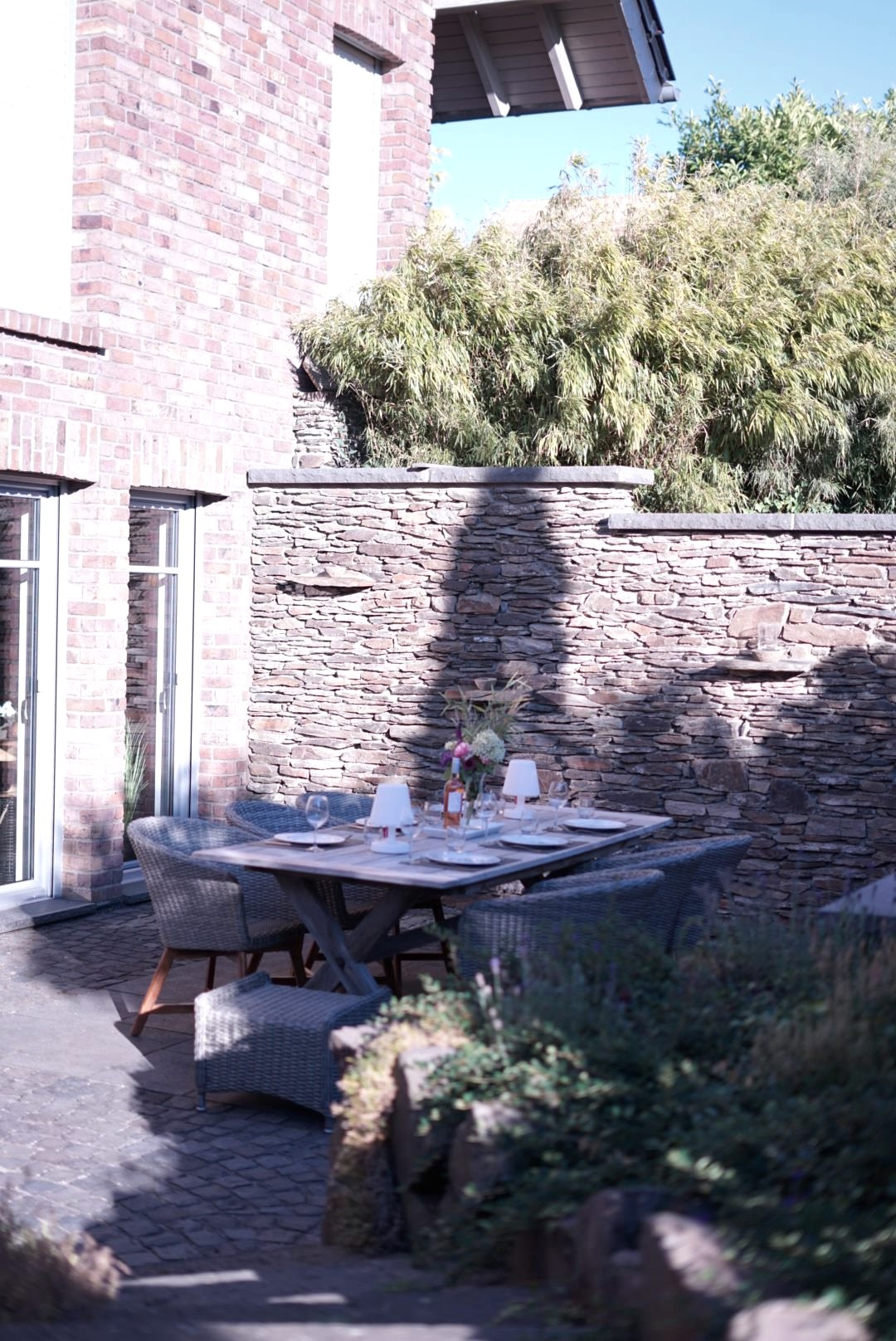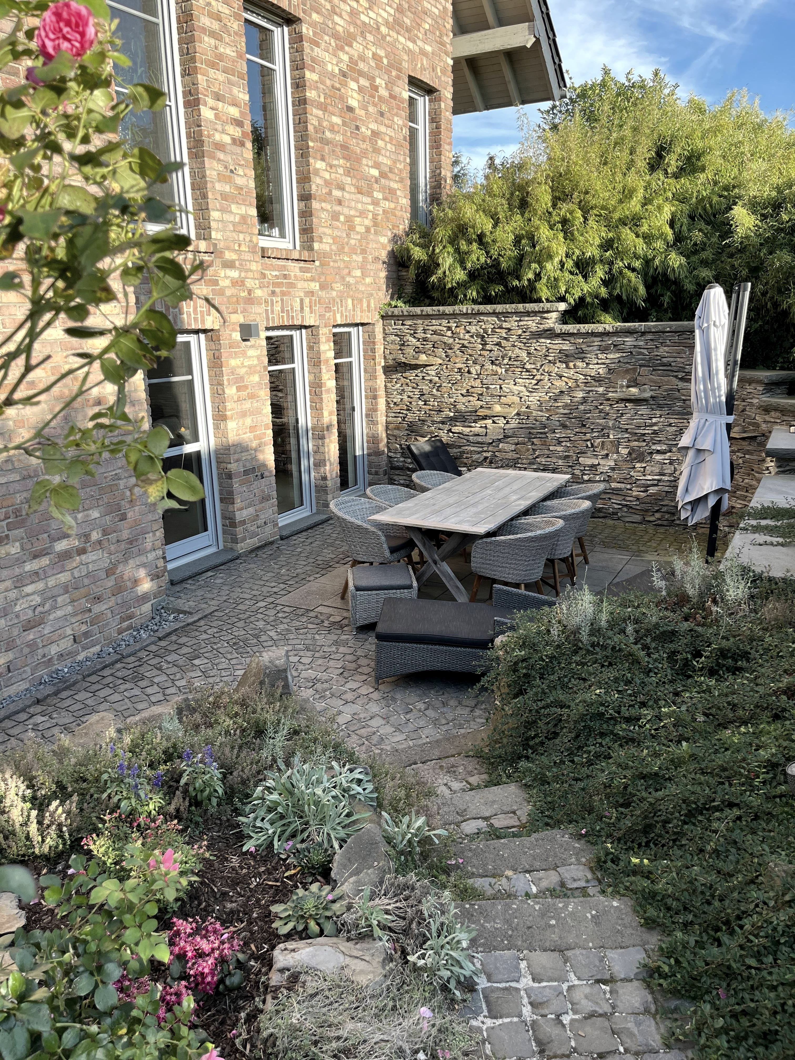 Wir freuen uns sehr euch nach Möglichkeit persönlich in unserer attraktiv, gemütlich und hochwertigen Ferienwohnung “Elztalidyll“ willkommen zu heißen. Die Wohnung befindet sich in sehr ruhiger Ortsrandlage, ca. 300 m vom schönen Wald des Elztal, aber nur ca. 3,5 km von der Autobahn A 48 entfernt. Die wunderschöne Süd- West- Terrasse wurde aufwändig mit einer echten Natur- Bruchsteinmauer eingeramt und lädt mit hochwertiger Rattan/ Holz Möbilierung zum Entspannen ein. Jahreszeitig (eingeschränkt nutzbar) stehen eine exklusive Rattan Sonnenliege und ein großer Sonnenschirm bereit.