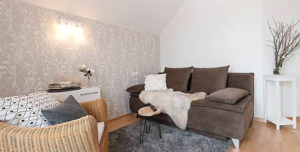 Maifeld, gemütliche Essecke, voll ausgestatte Küche, ruhiges Schlafzimmer, Badezimmer/Dusche, gemütliche Sitzecke im