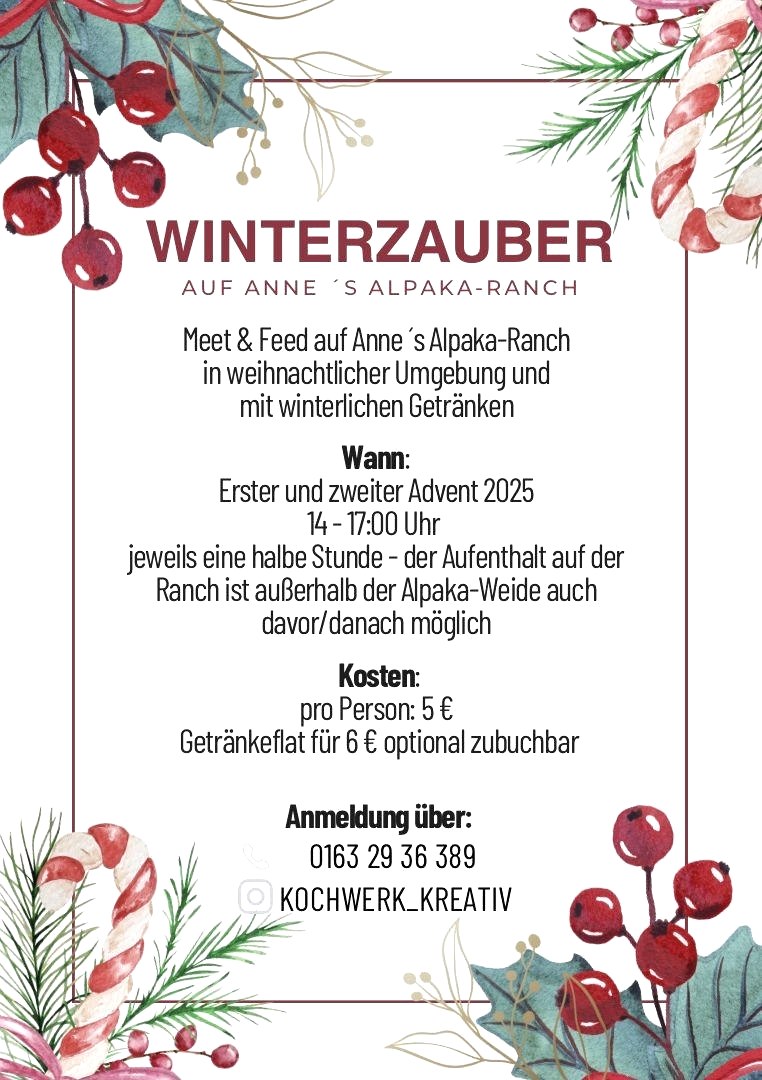Winterzauber mit Kochwerk Kreativ & Anne’s Alpaka-Ranch